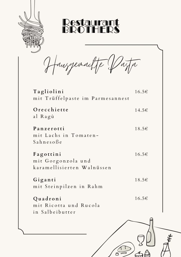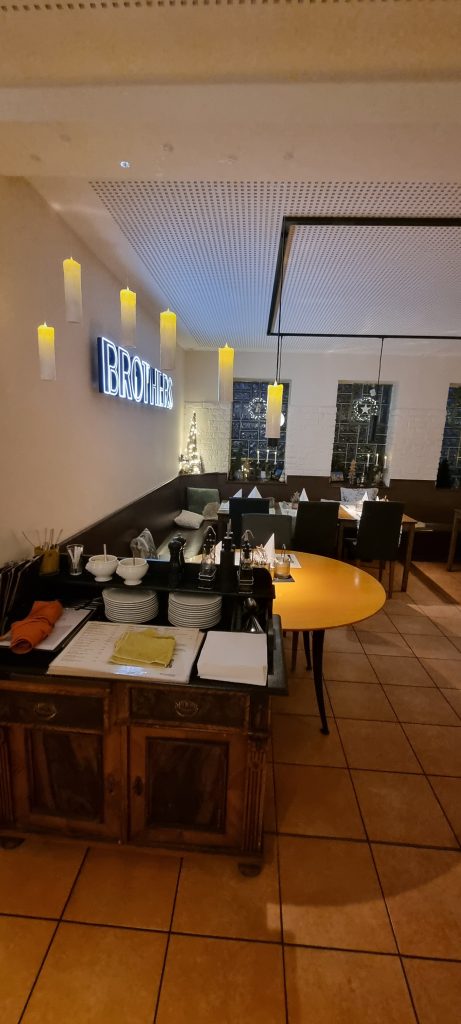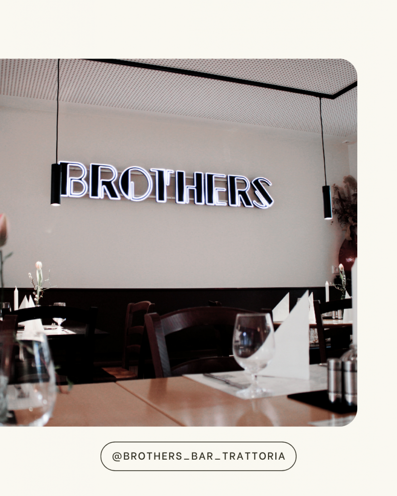 Rund 70 Gäste finden im „Brothers“ Platz und können sich in stilvollem Ambiente mit typisch italienischen frisch zubereiteten Gerichten und außergewöhnlichen Weinen verwöhnen lassen.
